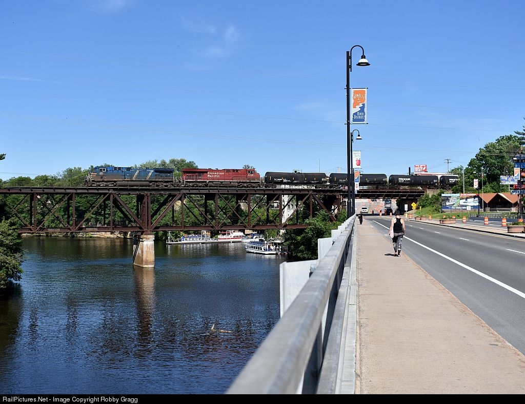 CEFX 1030 leads CP 287 west across the Wisconsin River and through the Dells.