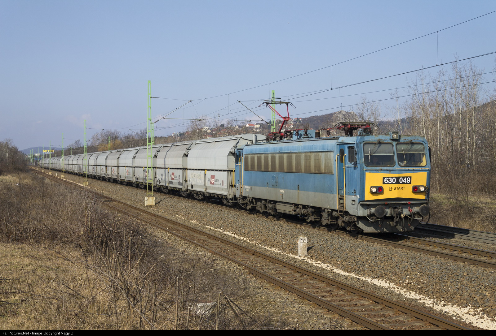 630 049 is heading towards Budapest with a freight train.