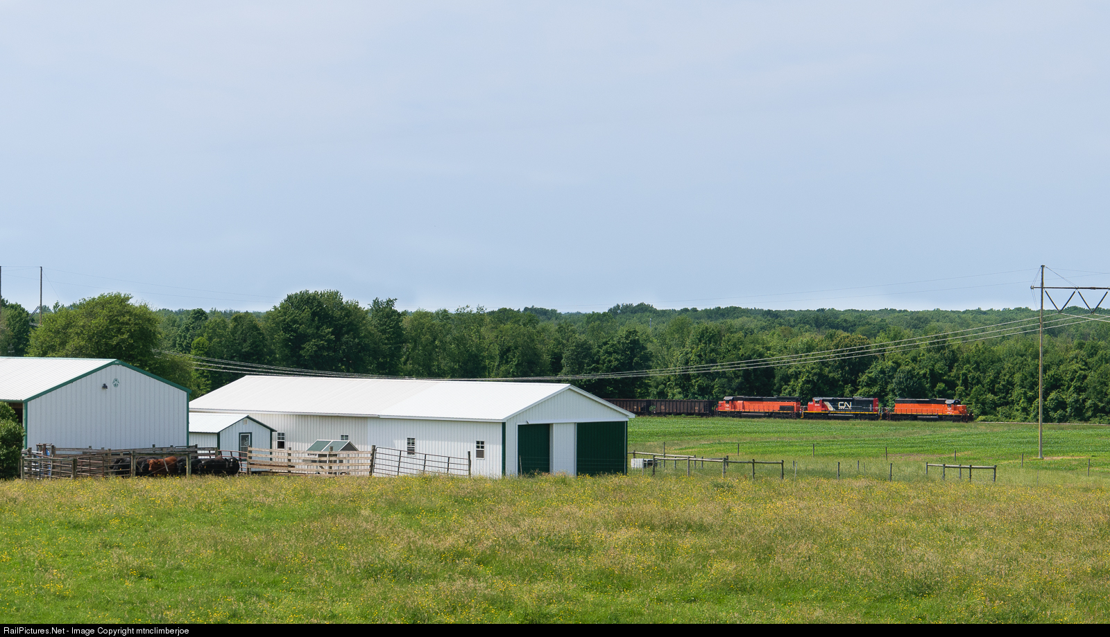 With both BLE 867 and 905 on the train, a Bessemer & Lake Erie (CN) loaded iron ore train has departed the harbor in Conneaut and crossed into Pennsylvania, passing by farms in the rural countryside as they head south.