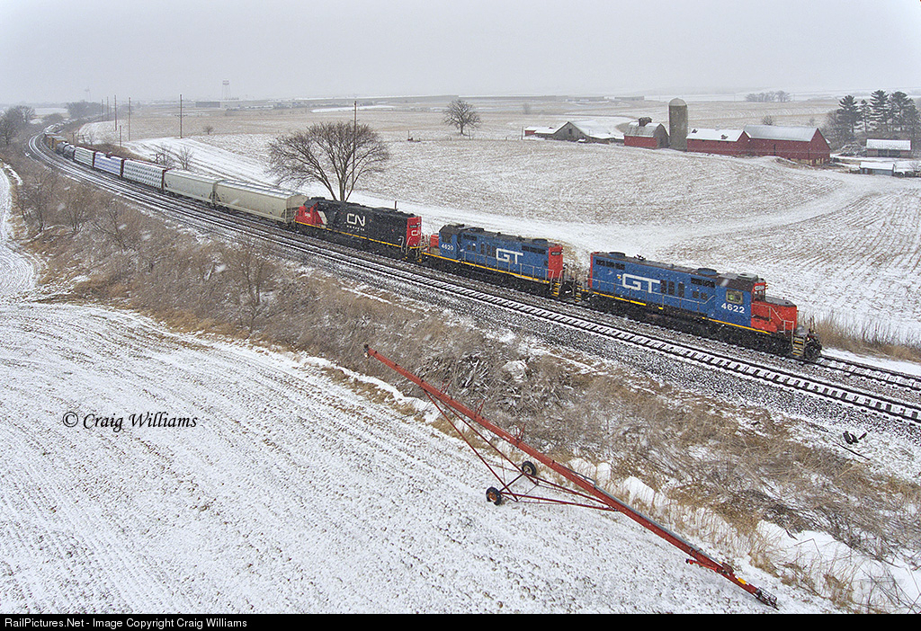 With a big 60 car train and work at Peosta, Farley, Dyersville (2) Delaware, and Manchester, this 565 local had a huge task ahead of them this snowy day. This job came out of Dubuque and will make a Manchester Turn. The GTW geeps have been a cool treat on the jobs in Dubuque most of the winter. The geeps ended up tagging along today on this job with normal L565's power (CN5486) to help out with the larger train. The job leaves the siding at West Peosta with the 1st stop done.