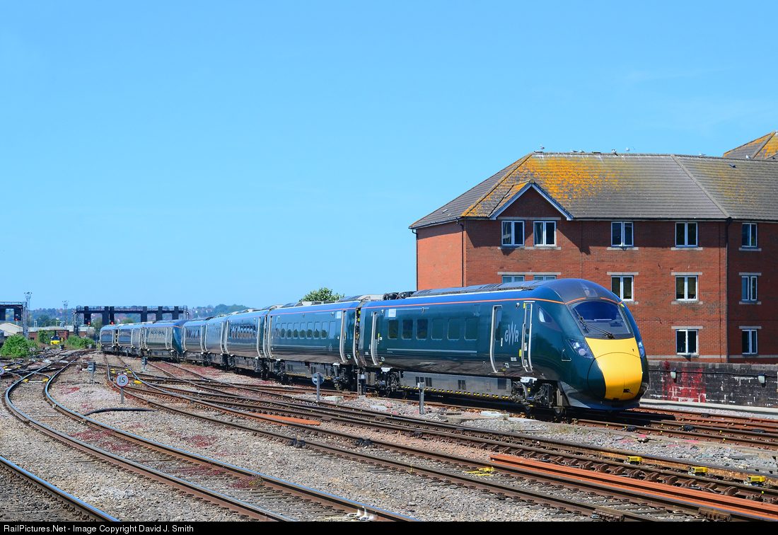 | The Class 800 units have entered service with Great Western Railway,and are gradually taking over the routes formerly operated by the Class 43 High Speed Trains.Here we see sets 800005 and 800031 arriving at Cardiff with a Swansea to London Paddington working.The units are operating on their diesel engines as the delayed electrification work has yet to reach South Wales. |