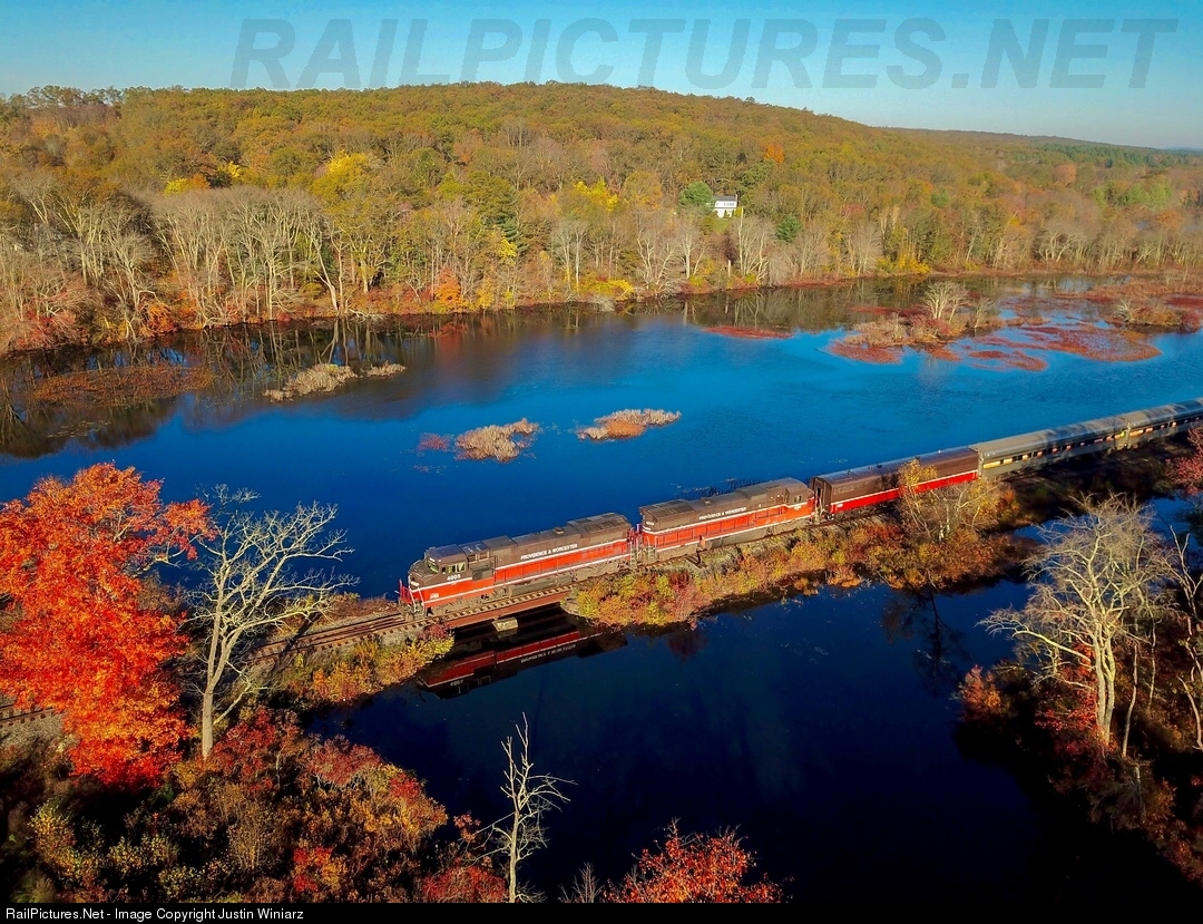 | Mass Bay Rail Enthusiasts chartered "Two Rivers" Train using Providence & Worcester equipment. The Train originated in Worcester and are making thethere way to Old Saybrook where the train would be handed over to the Valley Railroad. The Train pictured here led by by B40-8W #4005 & B40-8 #4004 skirts along the French River |