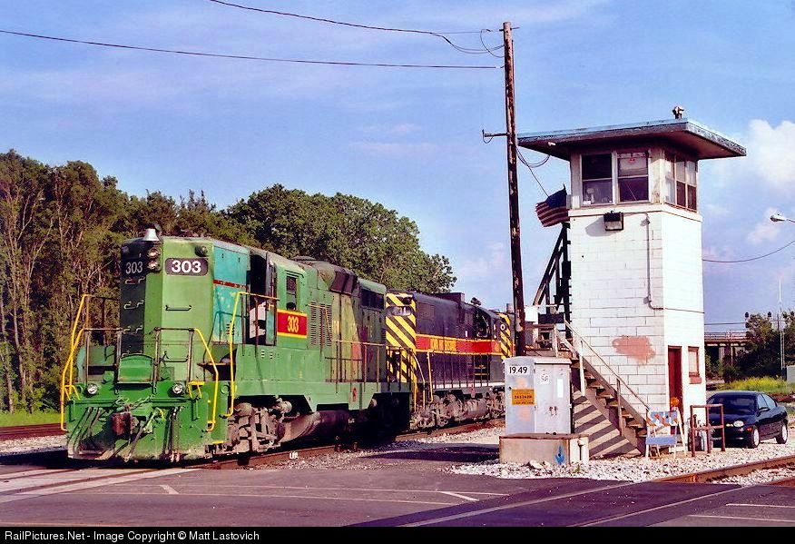 | IAIS 303 shoves down the IHB while passing one of the last remaining manned towers that operates the crossing gates, originally owned by the GTW now CN. |