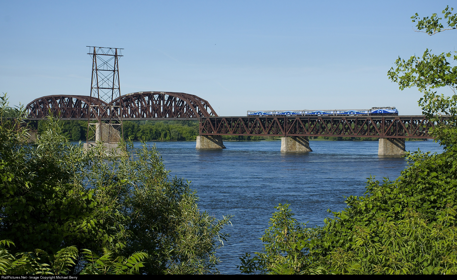 AMT 1345 pushes a deadhead move over the St. Lawrence River during the morning rush hour, on its way back to Candiac to pick up more commuters going to Montreal.