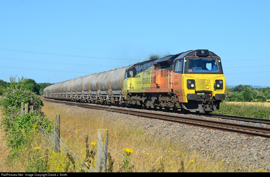 | Some nice late afternoon light at Keenes Crossing,on the outskirts of Gloucester,as 70810 passes with a Westbury to Aberthaw working. |