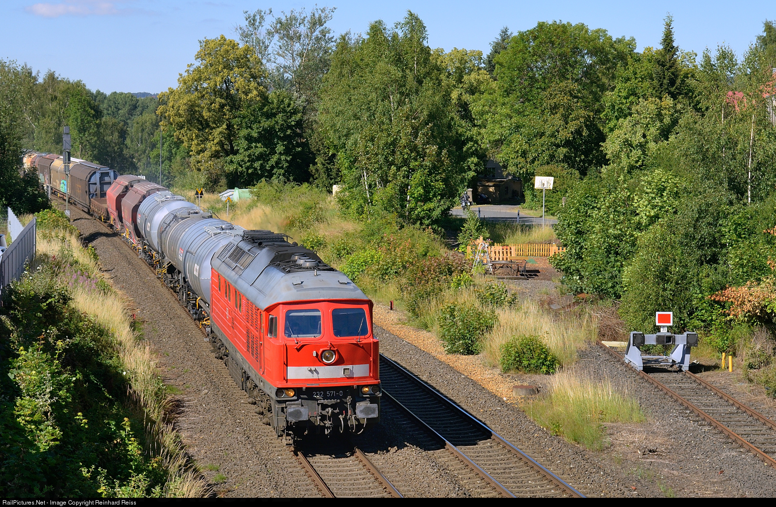 | 232 571 enters Marktredwitz station with an eastbound mixed freight from Nuremberg yard to Cheb (Czech Republic). |