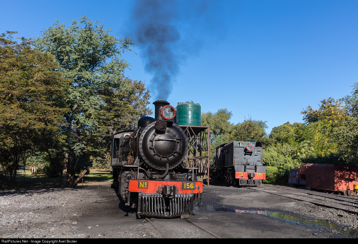 | Zambia Railways 10th Class 4-8-2 steam locomotive #156 is being prepared for the "Royal Livingstone Express" at the "Bushtracks" yard in Livingstone. The Garratt Class 14A #512, which is currently under repair, can be seen in the background. |
