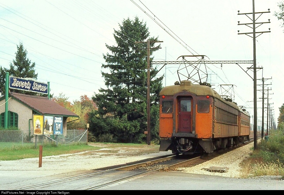 A two-car South Shore Line train en route from Chicago to Michigan City pauses at the classic little station at Beverly Shores, IN. Both the station and the cars date to the late 1920's, when the CSS&SB benefited from the major improvements directed by owner Samuel Insull.