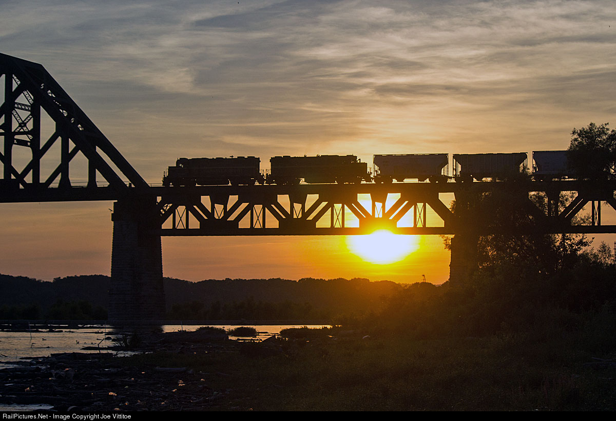 As a summer day ends LIRC's southbound J12A heads for Louisville crossing over the Ohio River.