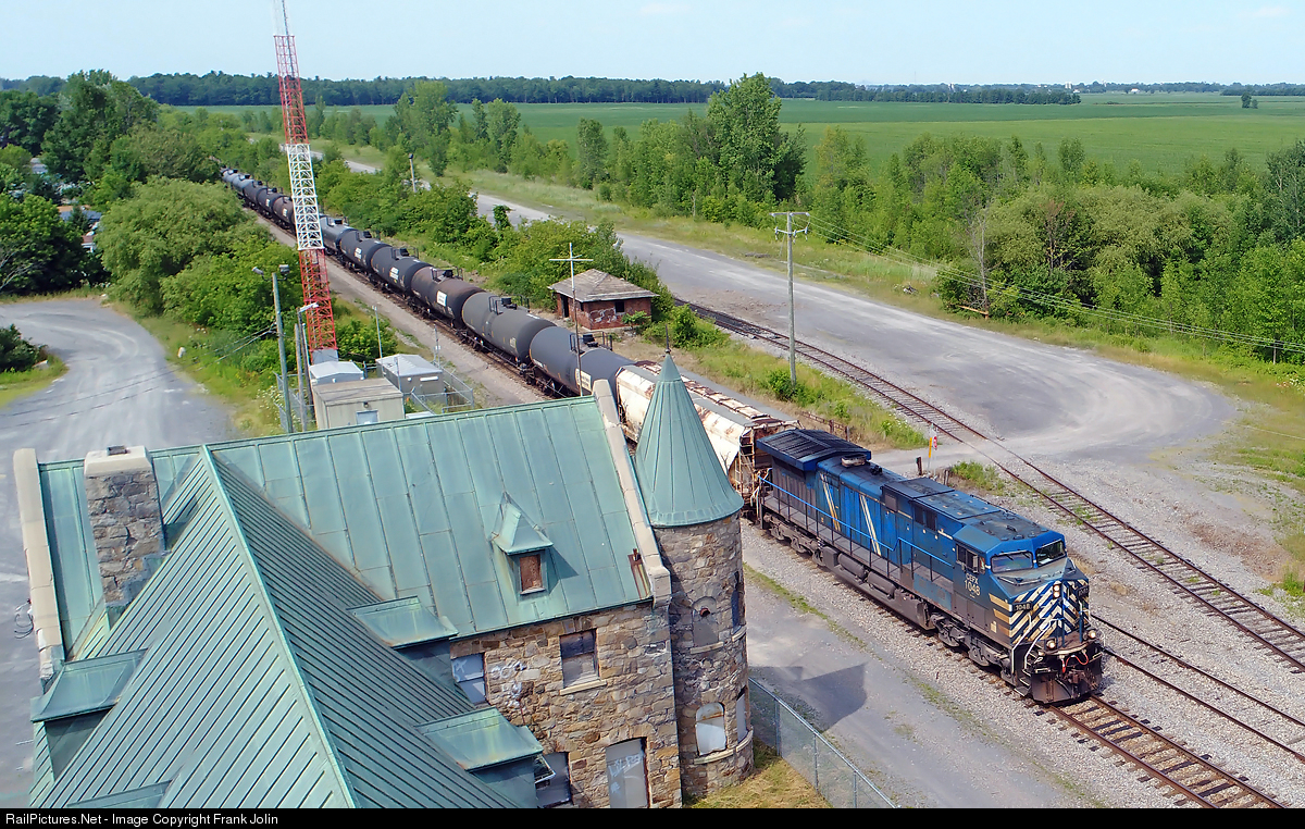 Canadian Pacific ethanol train 650 is passing by the old Napierville Junction Ry depot/ Customs House at Lacolle as it approaches the Canada/U.S border. CP 8834 is the rear DPU.