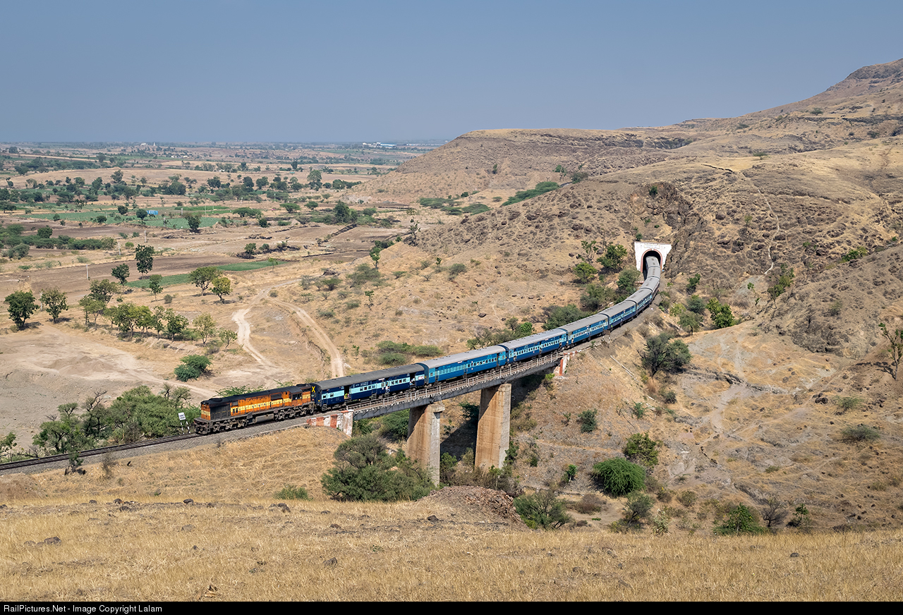 Morning passenger from Kolhapur exits tunnel number one to crass a viaduct in Shindawane ghat.