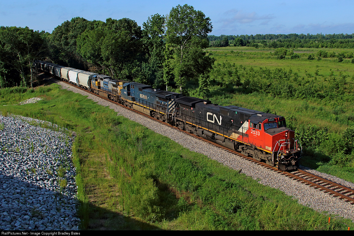 RailPictures.Net Photo: CN 2533 Canadian National Railway GE C44-9W (Dash 9-44CW) at Bee Lake, Mississippi by Bradley Bates