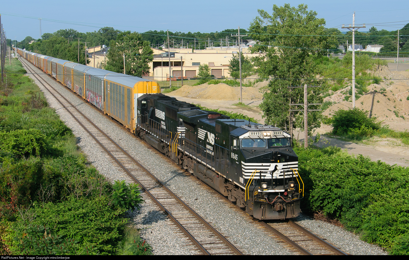 An NS Dash 9 leads empty auto train 287 as is passes the Wesley Control Point on the east side of Erie, PA.