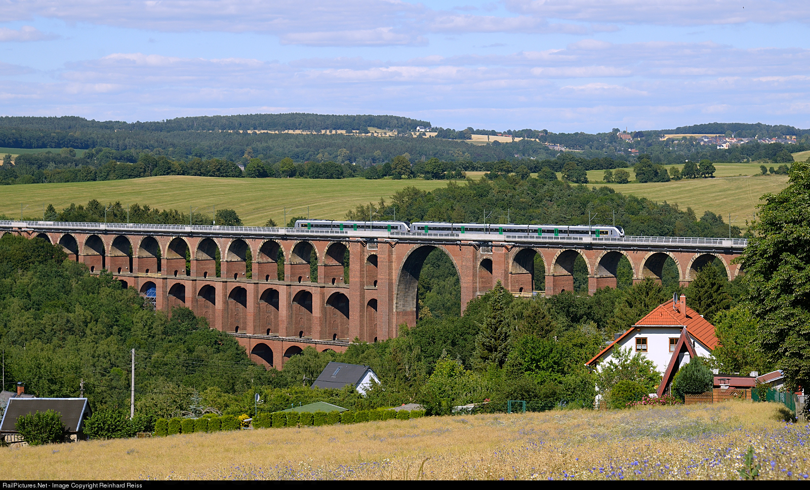 Two unknown Class 1440 from Mitteldeutsche Regiobahn (MRB) pass the huge Göltzschtal Viaduct between Reichenbach and Plauen.
