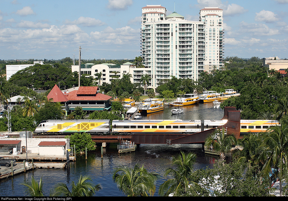 A Brightline service crosses the New River Fort Lauderdale, sometimes called the Venice of America due to the many waterways. Meanwhile Brightline adds more trains to meet demand.