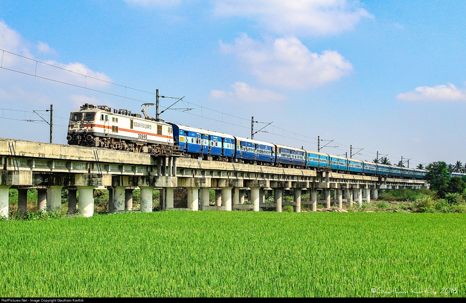 | On a fine sunday morning, Chennai Egmore-Guruvayur express traverses through the countryside powered by a WAP-7 locomotive. Its always a refreshing moment to stay away from the monotonous city life and do trainspotting at locations like these.. :) |