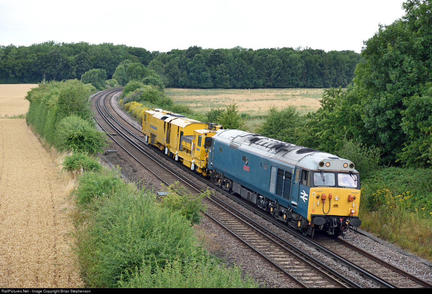 | Preserved British Rail class 50 diesel-electric Co-Co No 50 008 Thunderer, built by English-Electric which entered service in March 1968 and was withdrawn in May 1992, was unexpectedly used to drag a Harsco stone blower from Leicester to Dollands Moor to-day. These locos were never normally seen in Kent and even preserved examples have rarely visited this south east corner of the UK. |