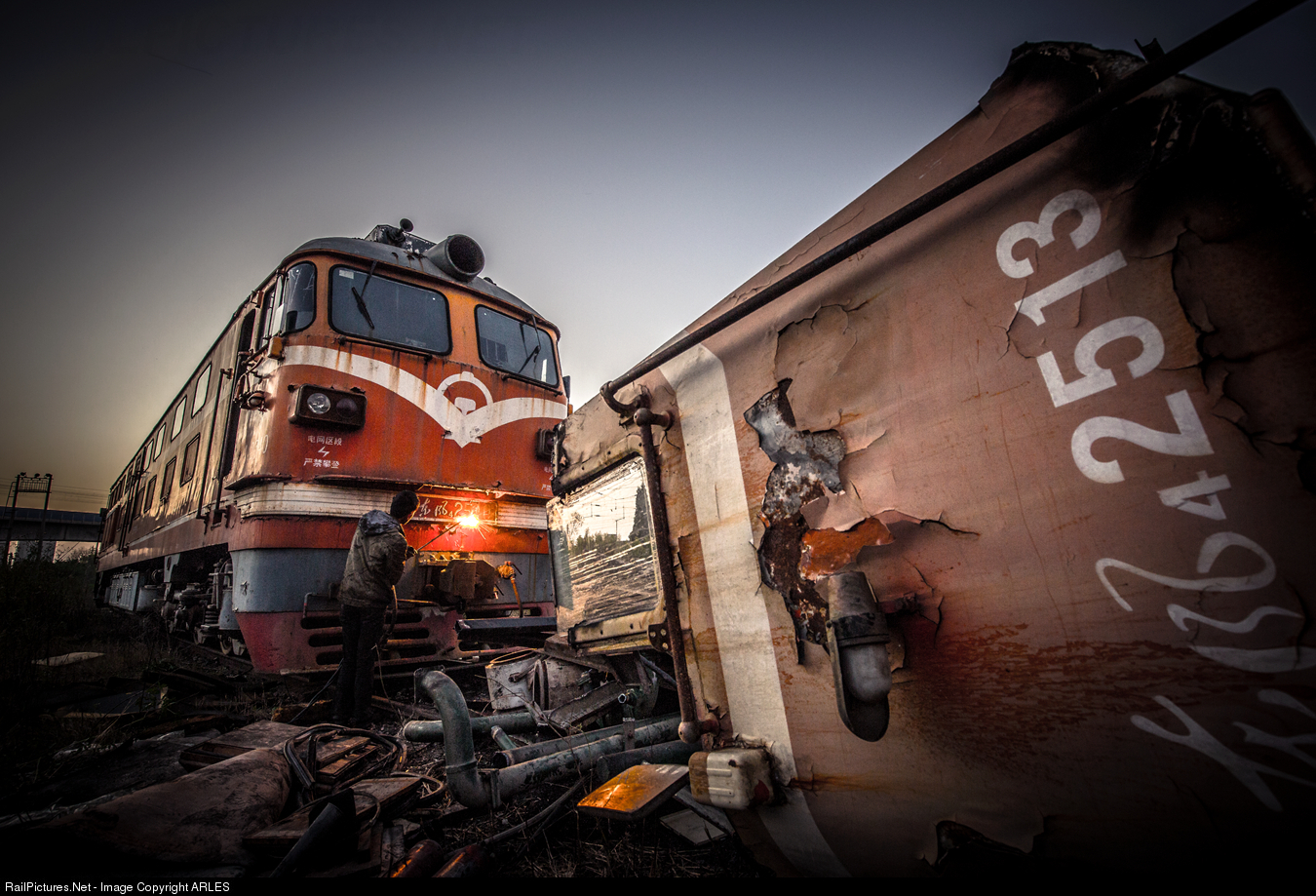 A DF4B locomotive that has been dismantled after being scrapped.