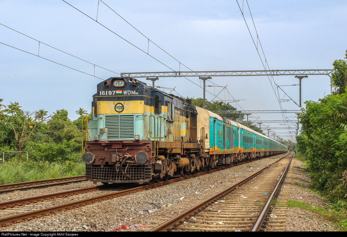 RailPictures.Net Photo: 16197 Indian Railways WDM-3A at Kumbalam, India by Akhil Sanjeev