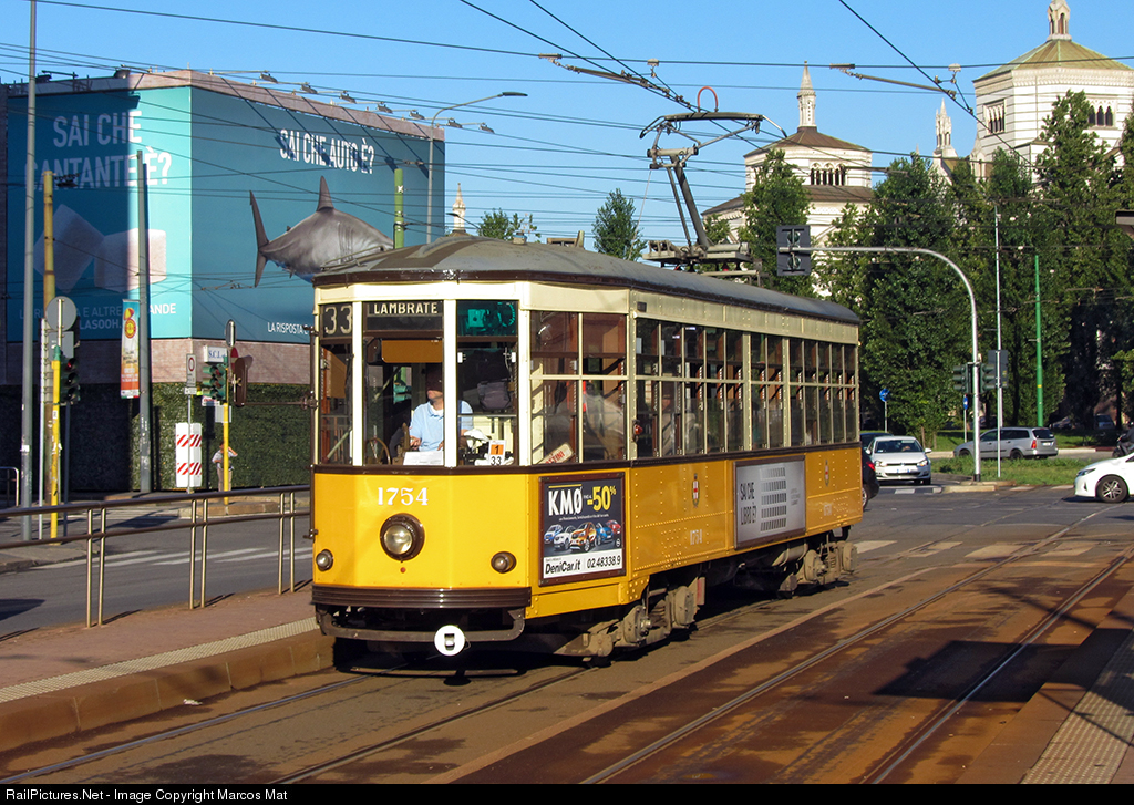 Introduced in Milan in 1928 , the trams of the 1500 series were manufactured in Italy under license of the company Peter Witt. They are the oldest trams in the world that are maintained in regular service. Of the 500 trams that initially formed the series, 200 are still operating daily. The one in the photo was doing a service on Line 33 between Piazzale Lagosta and Rimembranze di Lambrate