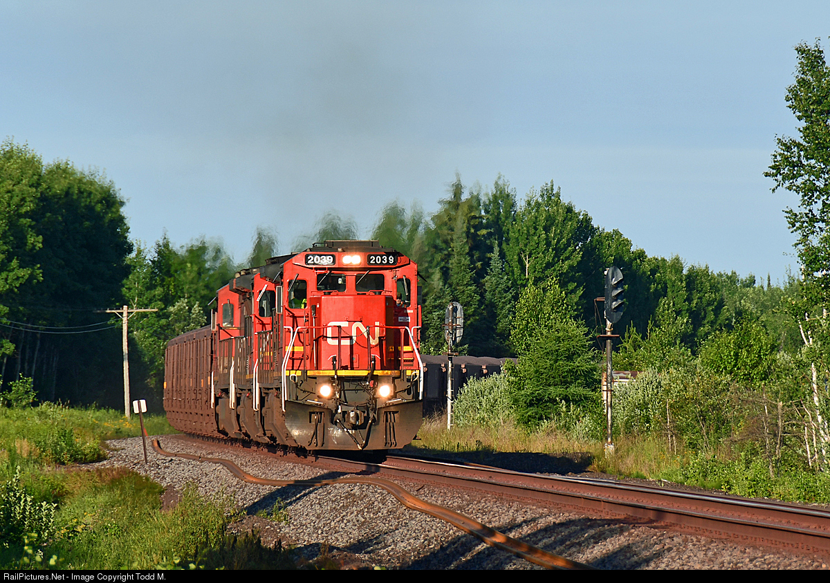 | It's 0630 on a beautiful summer morning as a train from U.S. Steel Minntac rumbles past the long out of service signals at the Thunderbird South mine spur as they continue towards the docks at Two Harbors with 145 cars of taconite pellets. |