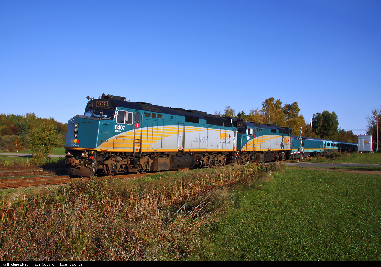 VIA Rail EMD F40PH-3 6407-6414 leading the eastbound train 14 the Ocean.