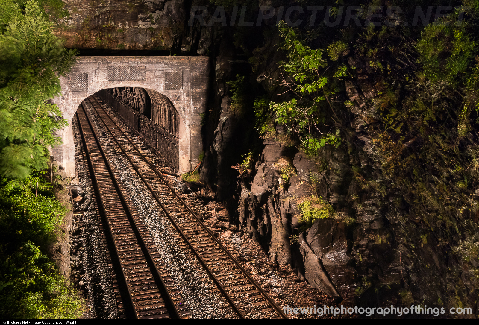 | The seldom documented east portal of the Harpers Ferry under Maryland Heights is not as glamorous as it's brother to the west. The brick face dates to 1894 and the only modification was only very recently taken in 2014 by a slight notch in the portal and tunnel walls to allow double stack containers.