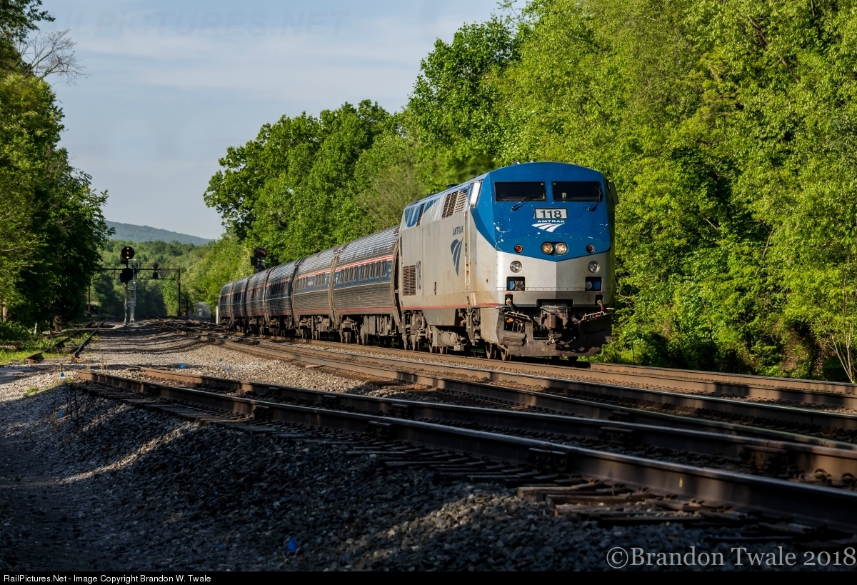 RailPictures.Net Photo: AMTK 118 Amtrak GE P42DC at Torrance, Pennsylvania by Brandon W. Twale