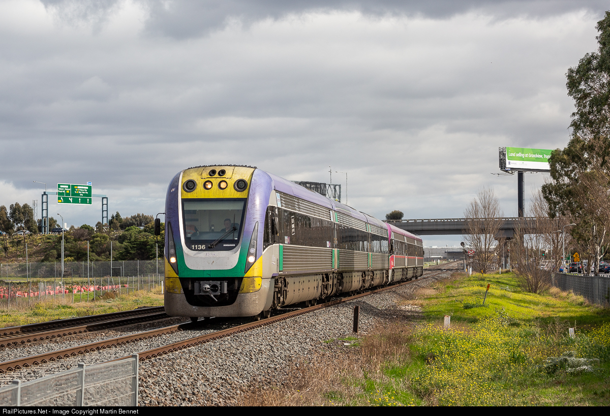 VL36-VL47 approach Ardeer station, in Melbourne's western suburbs. The rapid expansion of the city in this area is typified by a billboard above the freeway: 'Land selling at Grandview, Truganina.' In coming years this section will officially become part of the suburban network, with electrification to Melton. You can watch a brief video from this day here: https://www.youtube.com/watch?v=XCS67nBg-bU