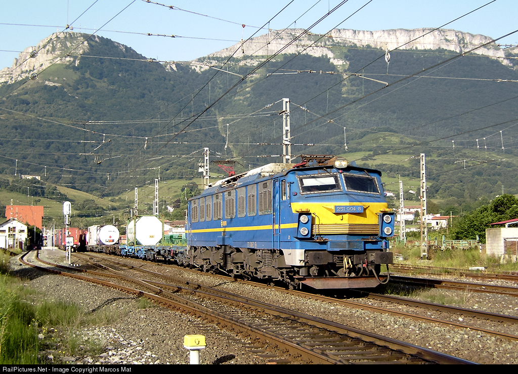 | The favorite locomotive of the Spanish railfans is the Mitsubishi 251.004. the only Mitsubishi 251 which retains its original colors since it was built in 1982. Today was in charge of a freight Zaragoza Plaza-Santurce. |