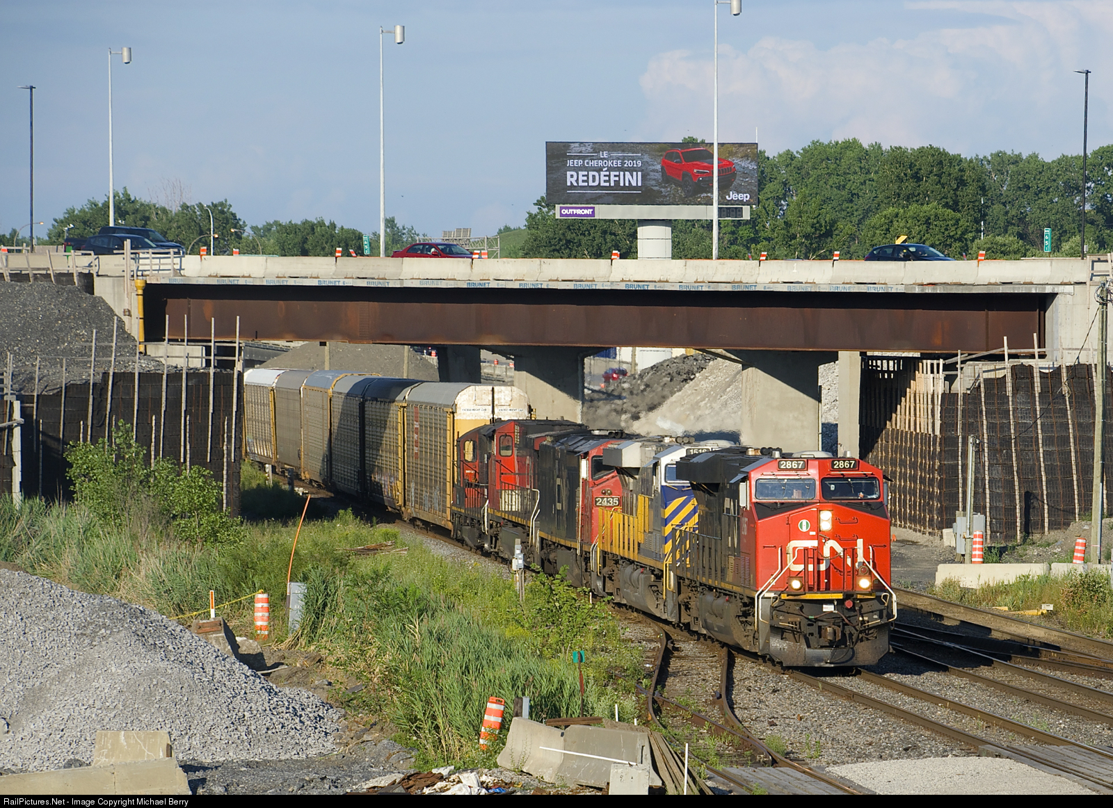 | CN 2867, CREX 1516, CN 2435, IC 2725 & CN 7032 are the power on CN 401 as it passes Turcot West. |