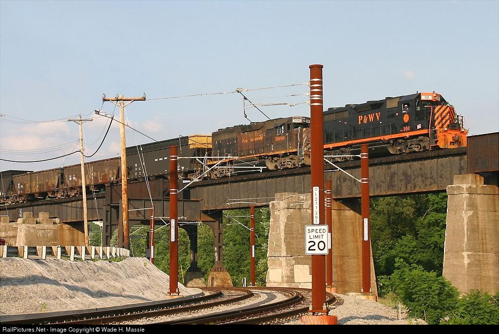 Looking sharp in its P&WV livery, the 101 rolls east above PAT's recently re-opened Overbrook line.