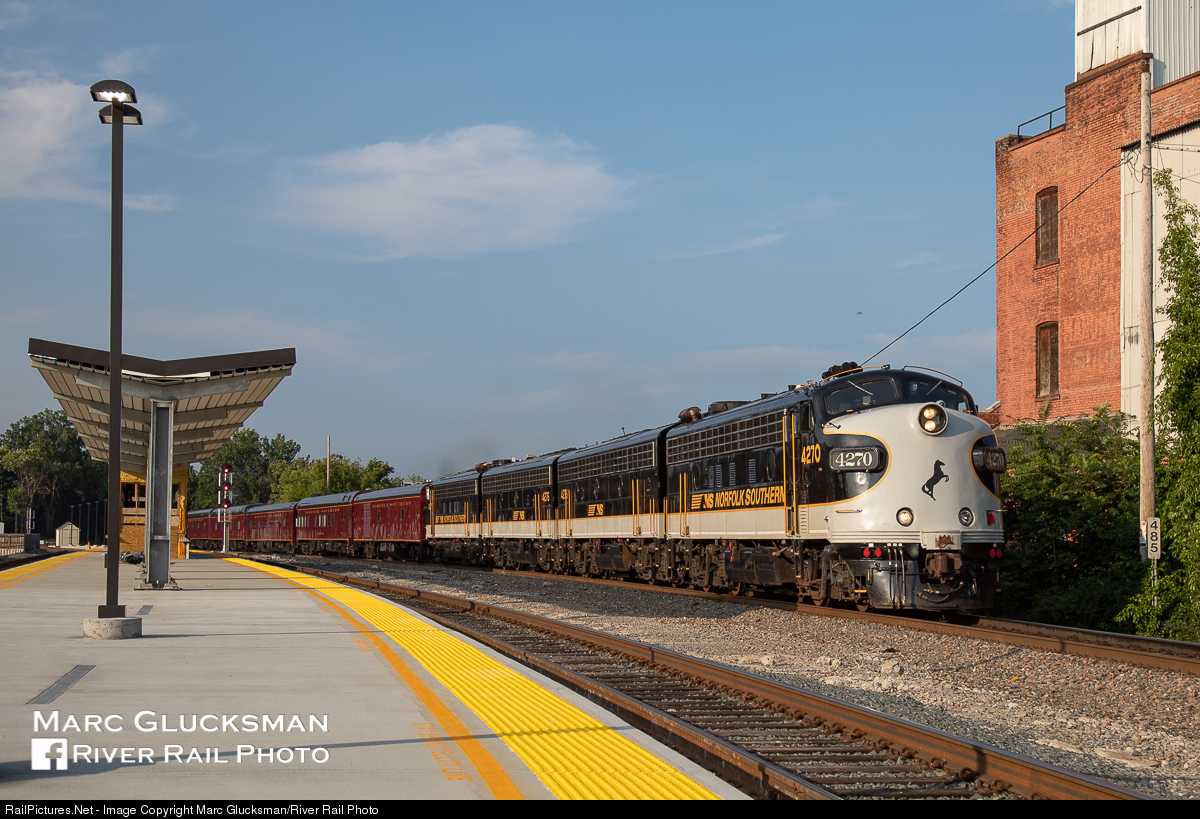 A view at Schenectady, NY passing 485 at the new Amtrak Station - with Norfolk Southern Corp Train 954 OCS (Office Car Special) on Thursday, August 9, 2018.
