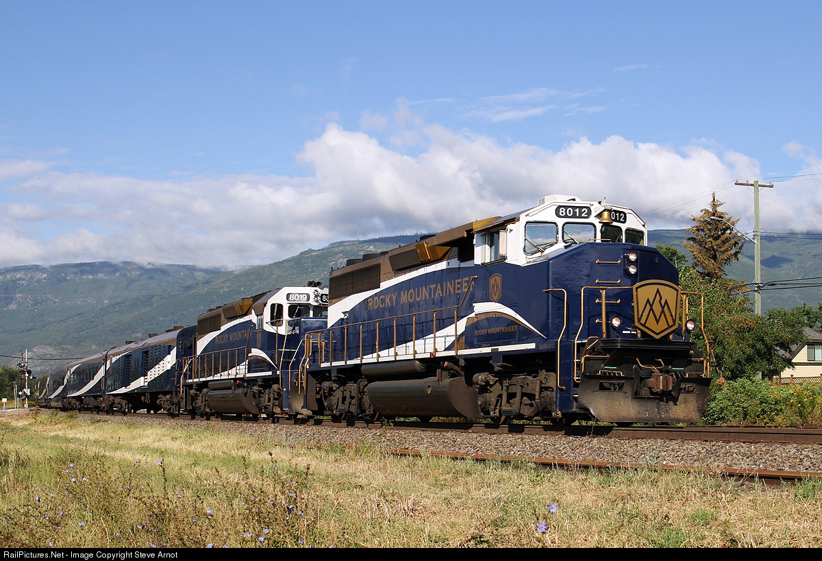 RailPictures.Net Photo: RMRX 8012 Rocky Mountaineer Railtours EMD GP40-2L(W) at Salmon Arm, British Columbia, Canada by Steve Arnot