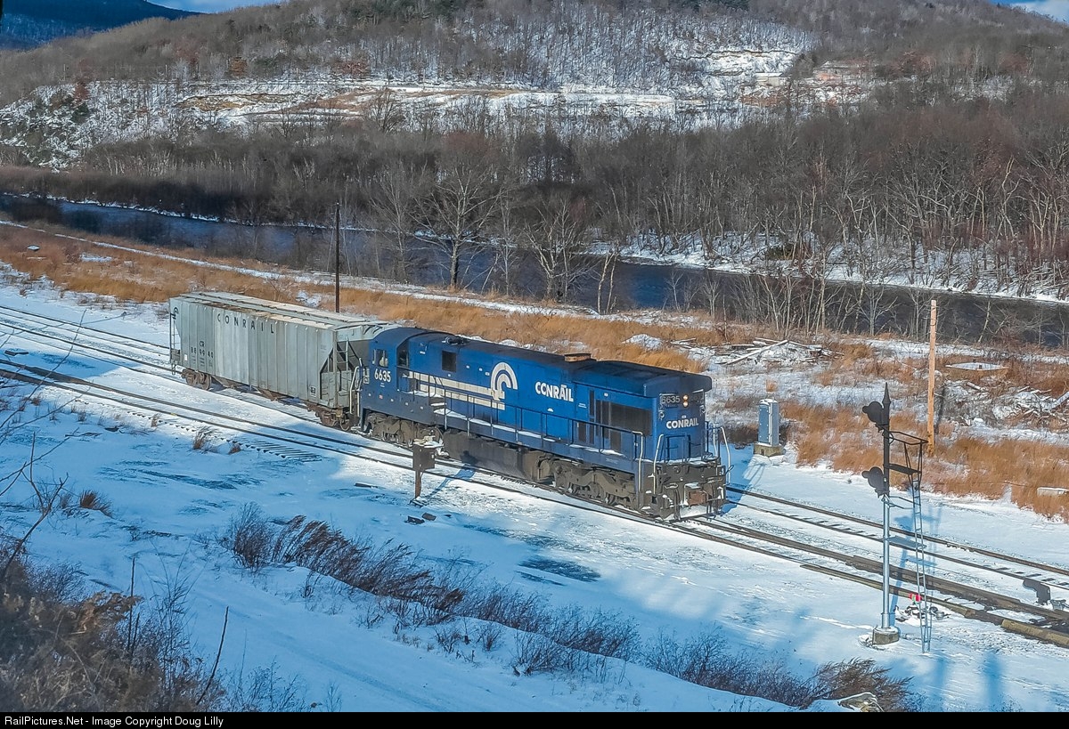 | The crew of Conrail local WJAL-19 has drawn a C36-7 as their power on a cold December day. Here they switch cars at Lehighton before heading eastbound. |
