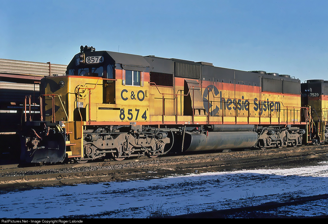 | Chessie System C&O SD50 8574 westbound at Niagara Falls, Ontario on December 14, 1986. |