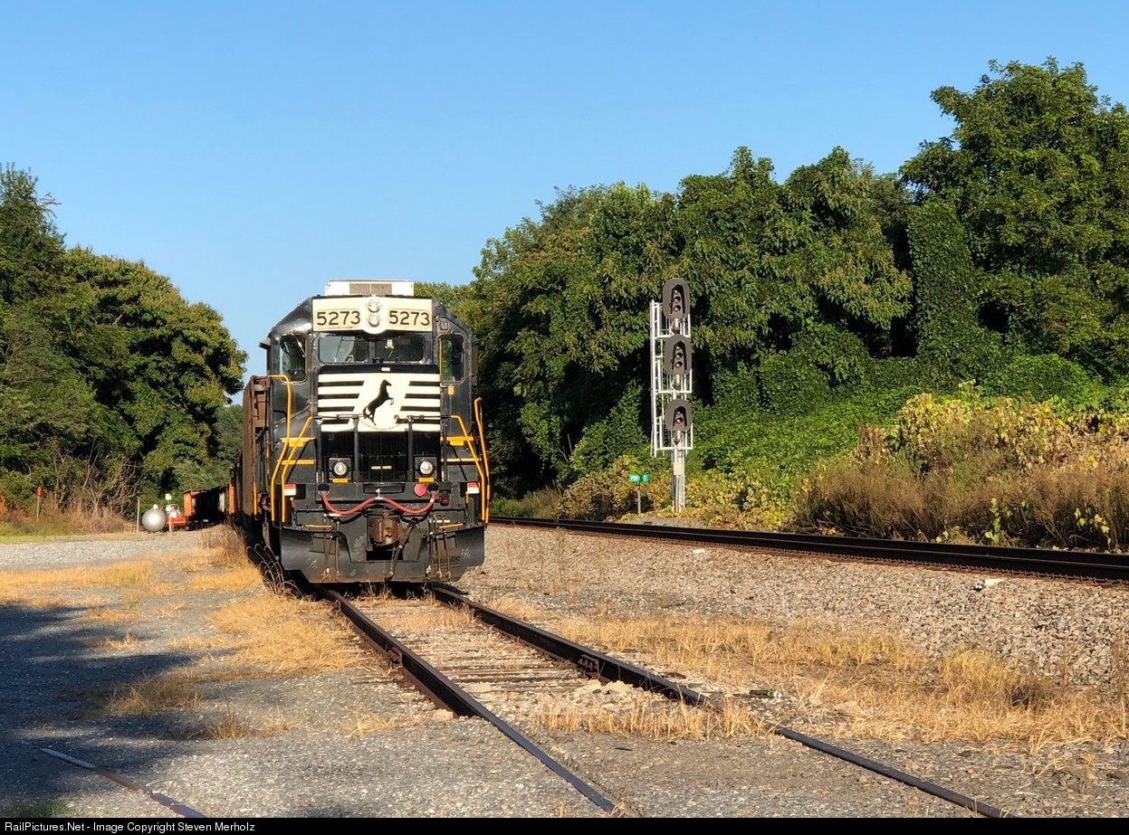 | A Norfolk Southern work train sits at Forest for the evening. A lot has recently changed in Forest including the former depot which stood to the left of the train and was demolished last April and the new signal that replaced the N&W CPL. |