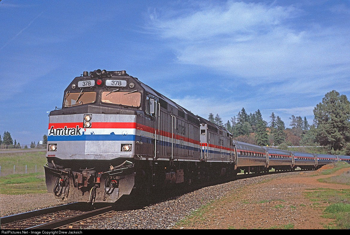 Westbound Reno Fun Train passing thru Applegate. This train was somewhat unusual in the it led by only two units,possibly due to clear weather over the hill. Also, as best as I recall, this was the first time I saw "Amtubes" as the consist. The 1990 date MAYBE ini accurate,