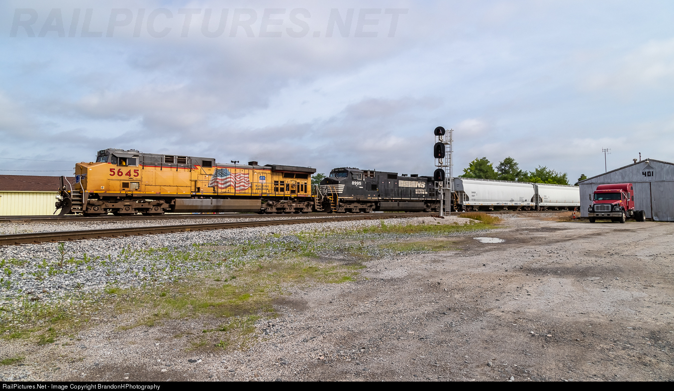 | NS 15E with a UP GE starts its pull out of Bellevue Yard bound for Dupo, IL. UP Power fairly common on this train if any is in the yard that is serviceable at Bellevue. Once this train gets to Dupo it will then continue onto Pine Bluff, AR where this train will be humped at the former MP Yard. |