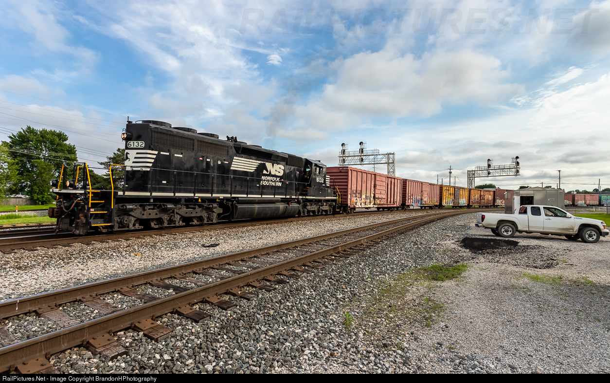 | NS L26 is a local that runs from Bellevue to Fremont and back, and usually has six axle EMDs in charge usually two from past experience. NS 6132 is a prime example of this rule and a rather odd one at that for this reason alone L26 this day was 46 cars back to Bellevue with the single unit, 6132 was built as NW 6132 and still to this day can be seen running LHF on occasion. |