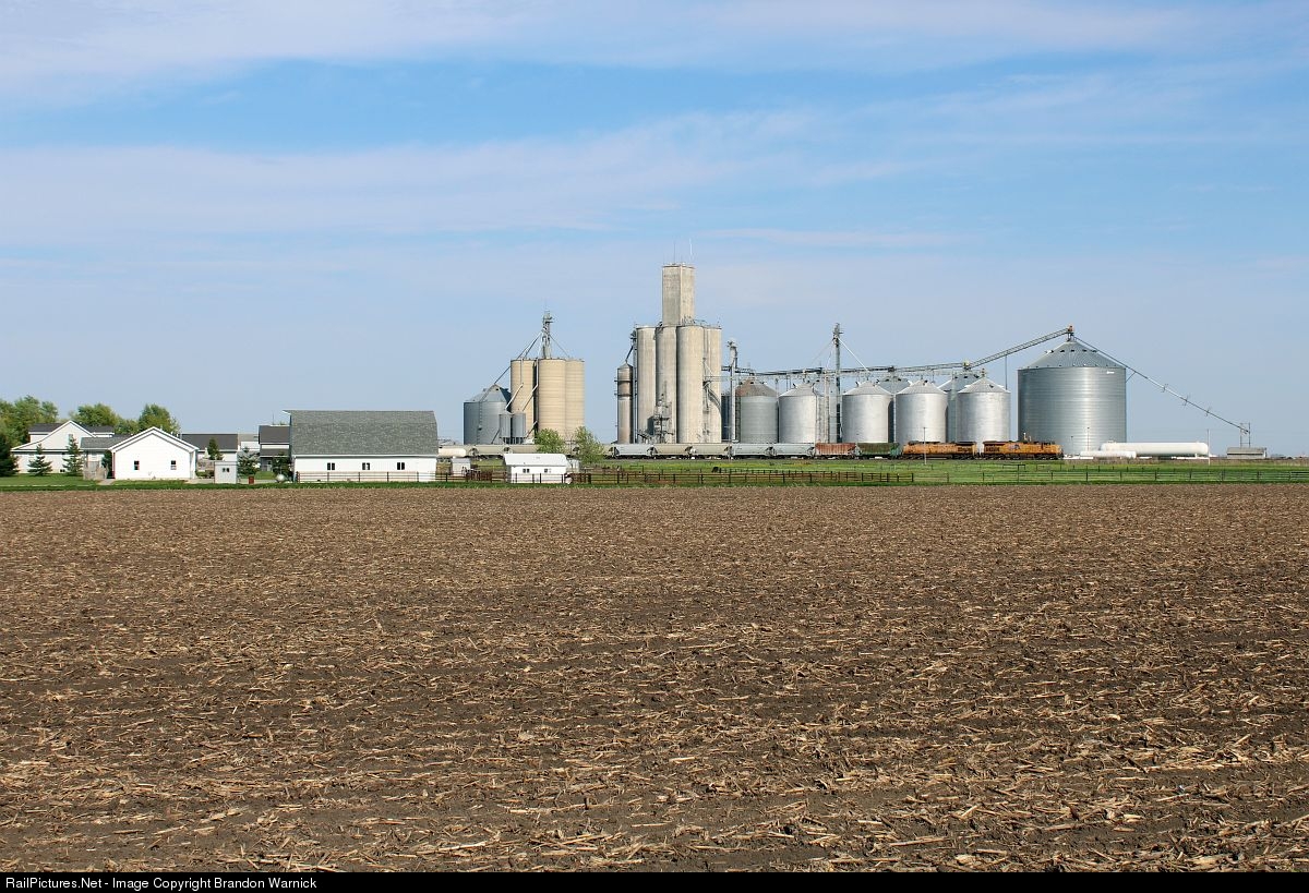 UP 7814 leads a frac sand train south through the small town of Cadwell Illinois.
