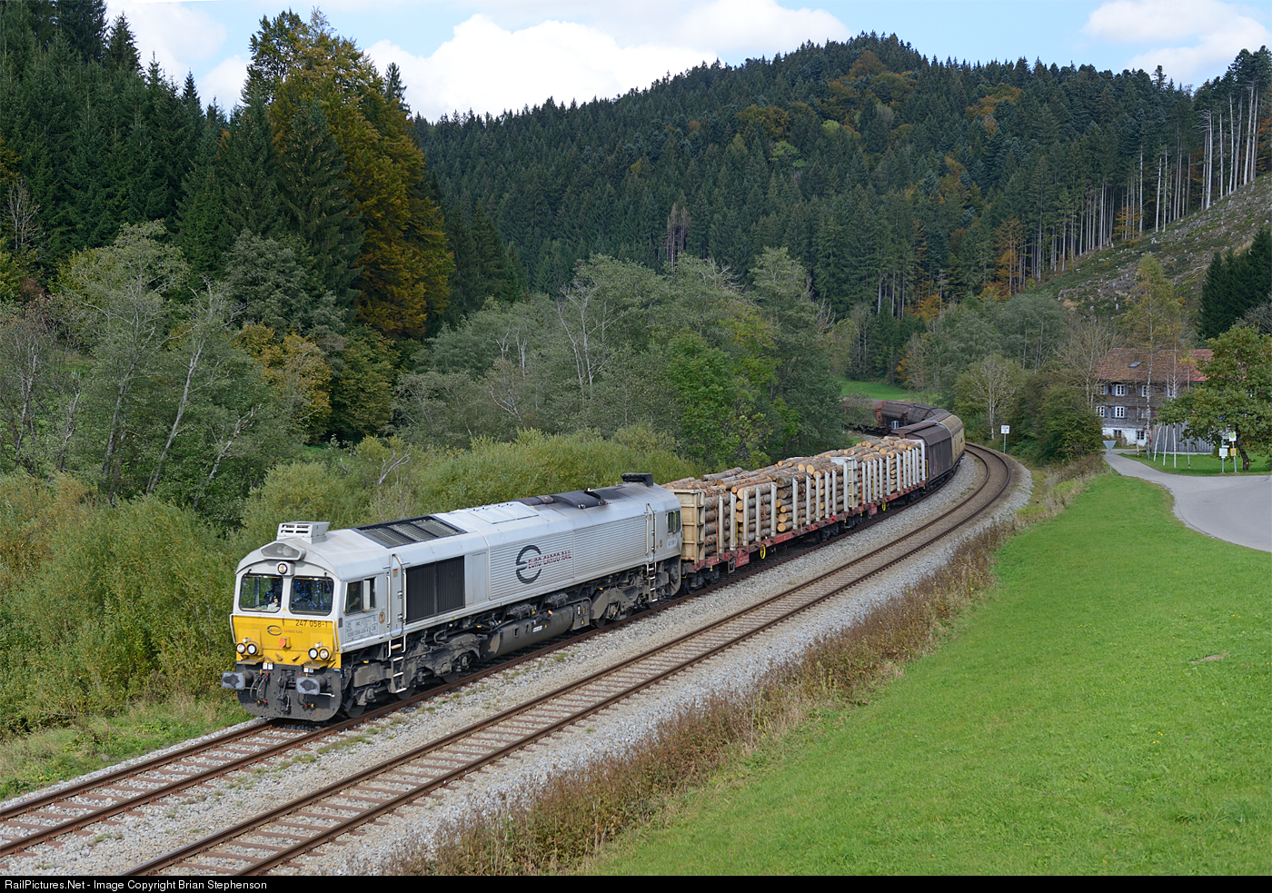 | A GM in the Algau. Former ECR class 66 No 247 058-1 (1266 458-5) is working hard with a long freight train from Buchs SG to Kufstein during the Arlberg diversions in 2014. It is believed this was the only time a 66 was used over this route. |