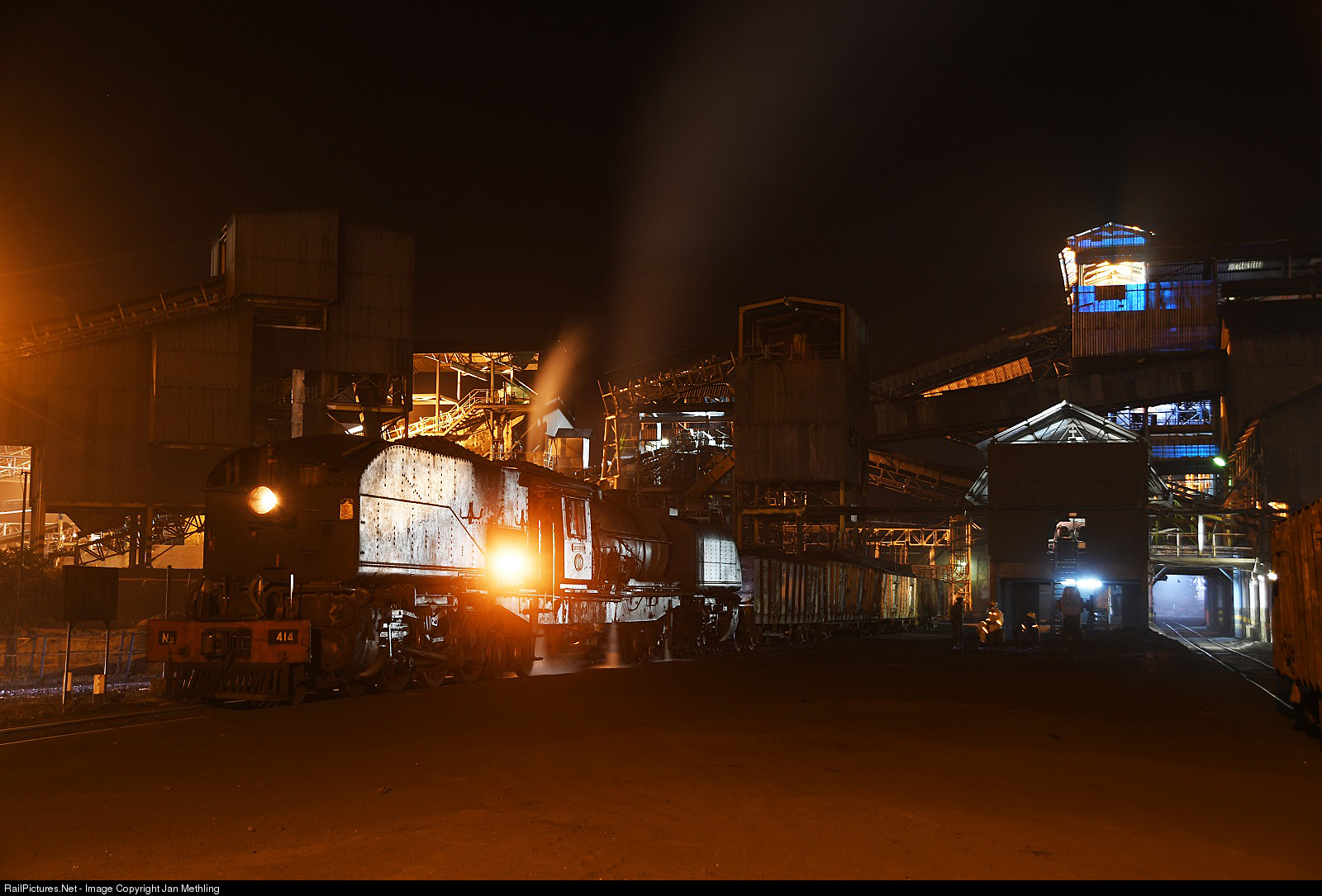NRZ 15A 414 on hire to the Hwange Coal Mine for shunting service, seen here in a night-shot under the loading plant