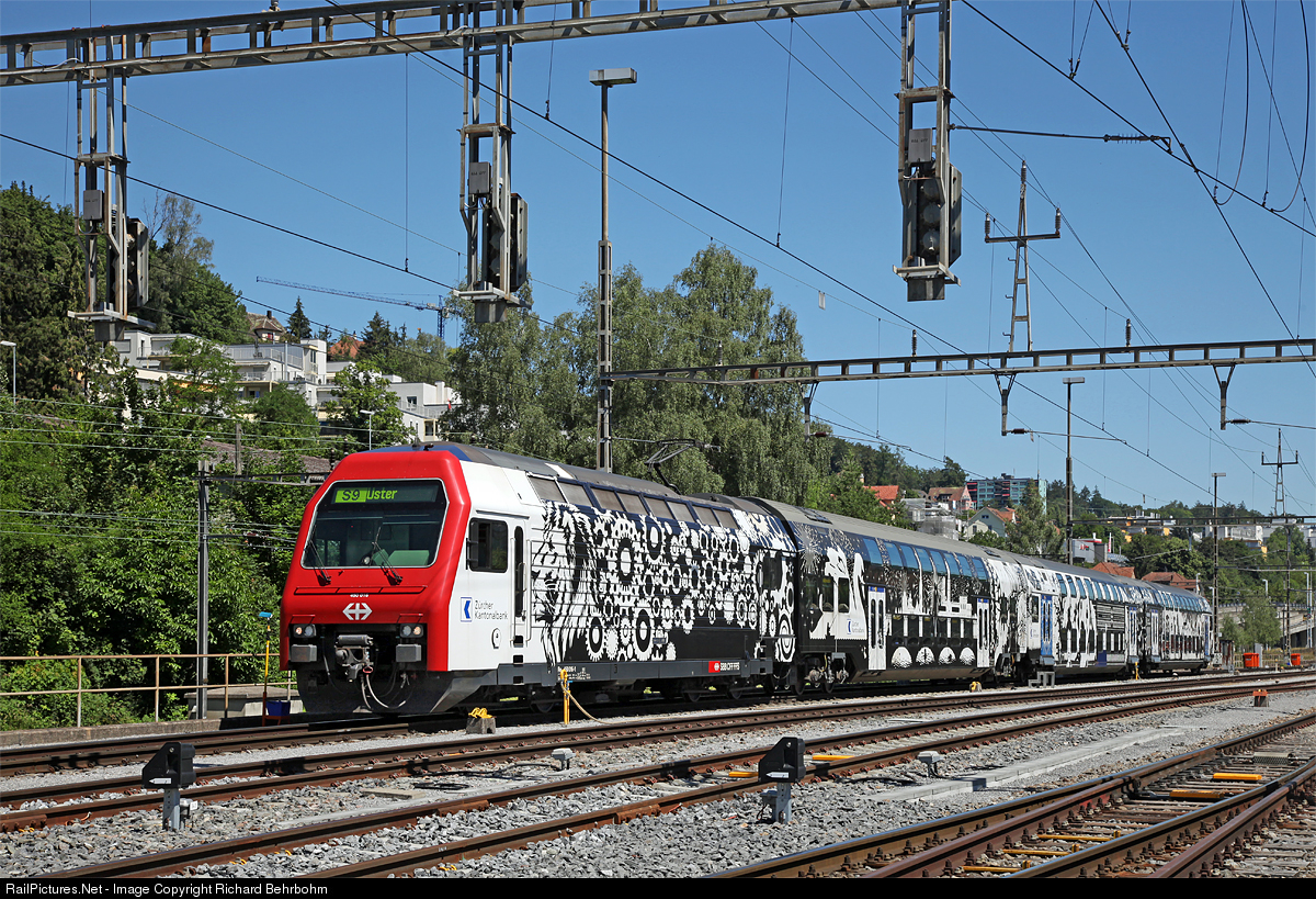 Since july 2013, this double deck commuter trainset (DPZ) of the S-Bahn Zürich is decorated for the ZKB (Zürcher Kantonalbank).