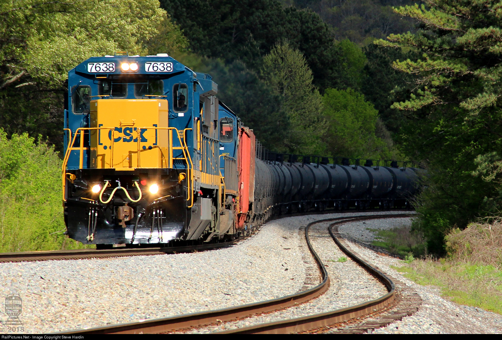 A standard cab C40-8 leads the string of empty ethanol tank cars, as they slither up the grade through one of many S curves on the old Western & Atlantic Sub.
