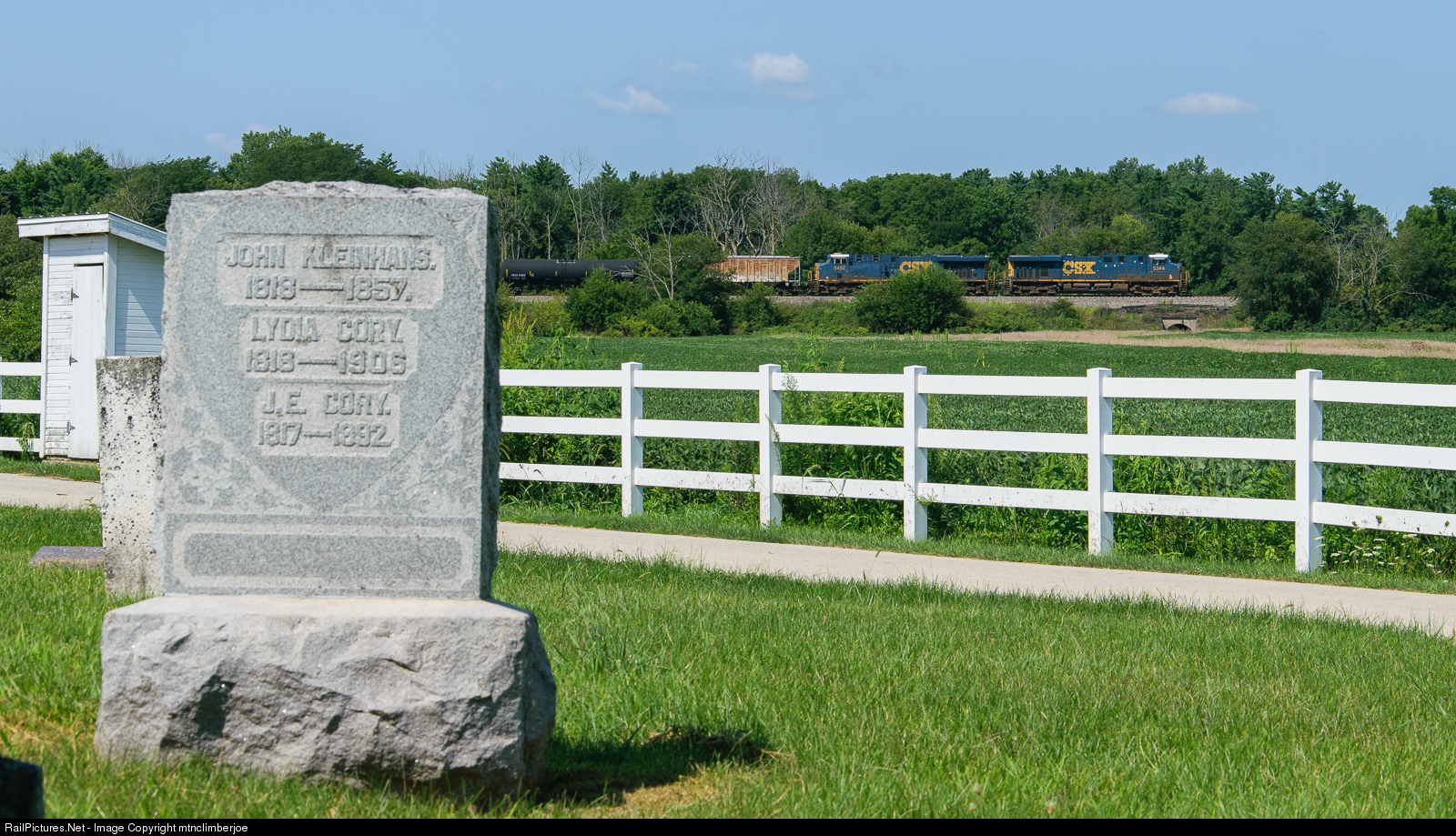 A CSX empty ethanol train breaks the silence as it roars past a cemetery of turn of the century gravestones in Swanders, Ohio.