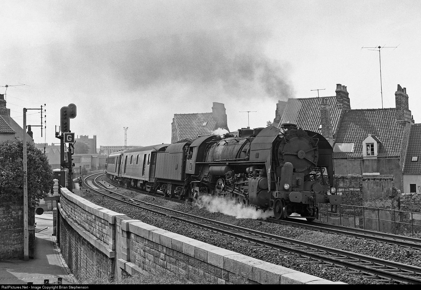 | 50 Years ago - Another 'Liberation Mikado' of the SNCF built by the Montreal Locomotive Works, No 141 R 1272 blasts away from Boulogne-Ville station with the 08.45 Paris Nord to Calais-Maritime express. Although given a major overhaul at Sotteville Works in February 1968 it was removed from service in 1971. |
