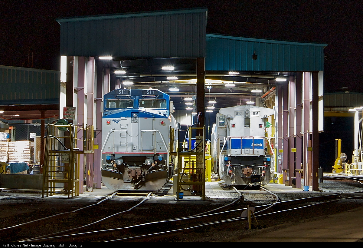 A quiet night as Amtrak 511 and 516 are in the diesel service at the Autotrain facility.
