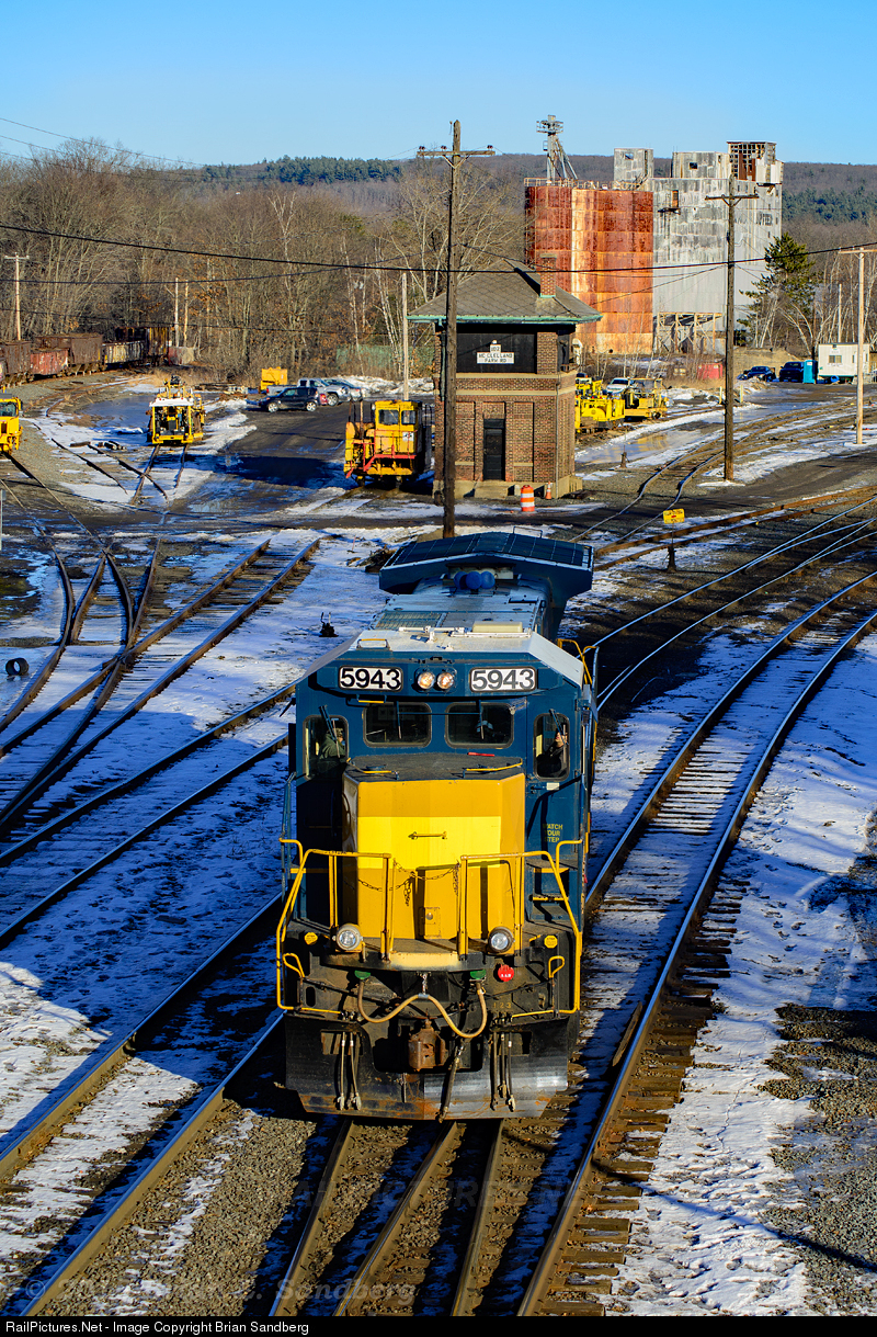 | Secondhand GE's from CSXT make up most of the Pan Am Railways roster in 2018. MEC B40-8 #5943 is switching at East Deerfield, MA 1/26/18. |