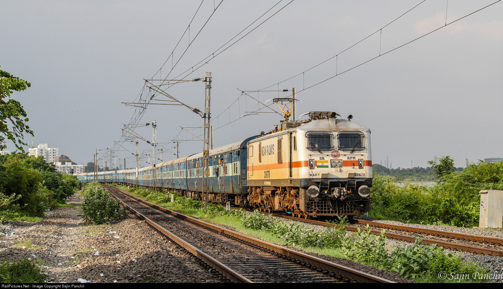Royapuram WAP 7 Hauled Pallavan Super Fast Express from Chennai, moving towards, its next schedule halt Chengalpetu